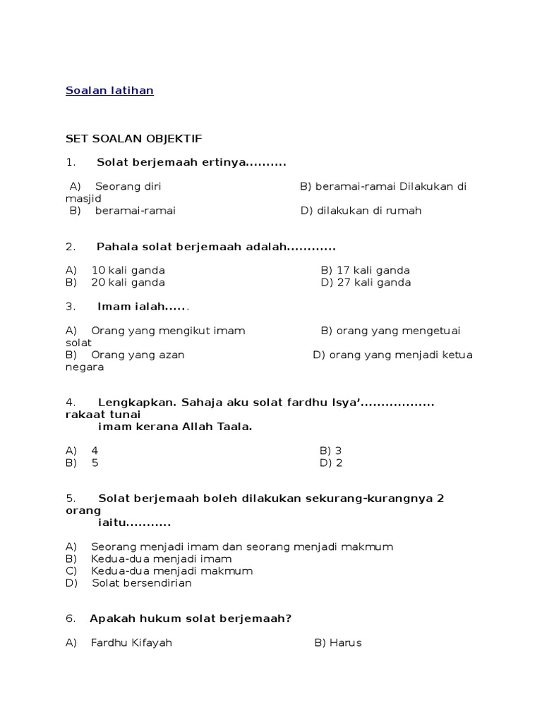 Set Soalan Objektif Berkaitan Solat Pdf